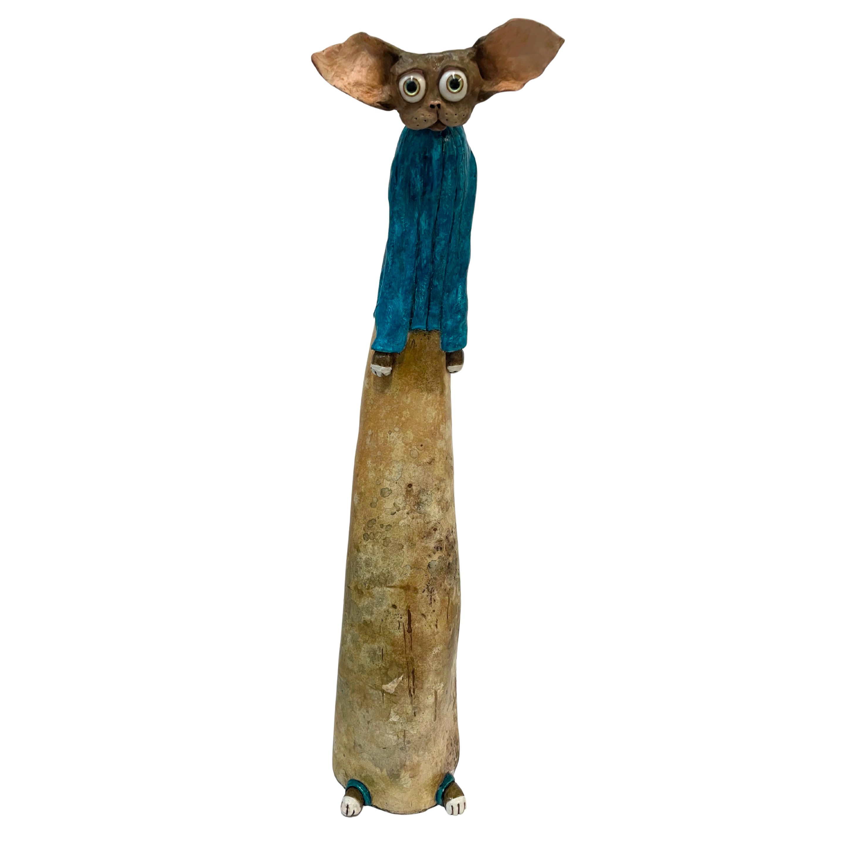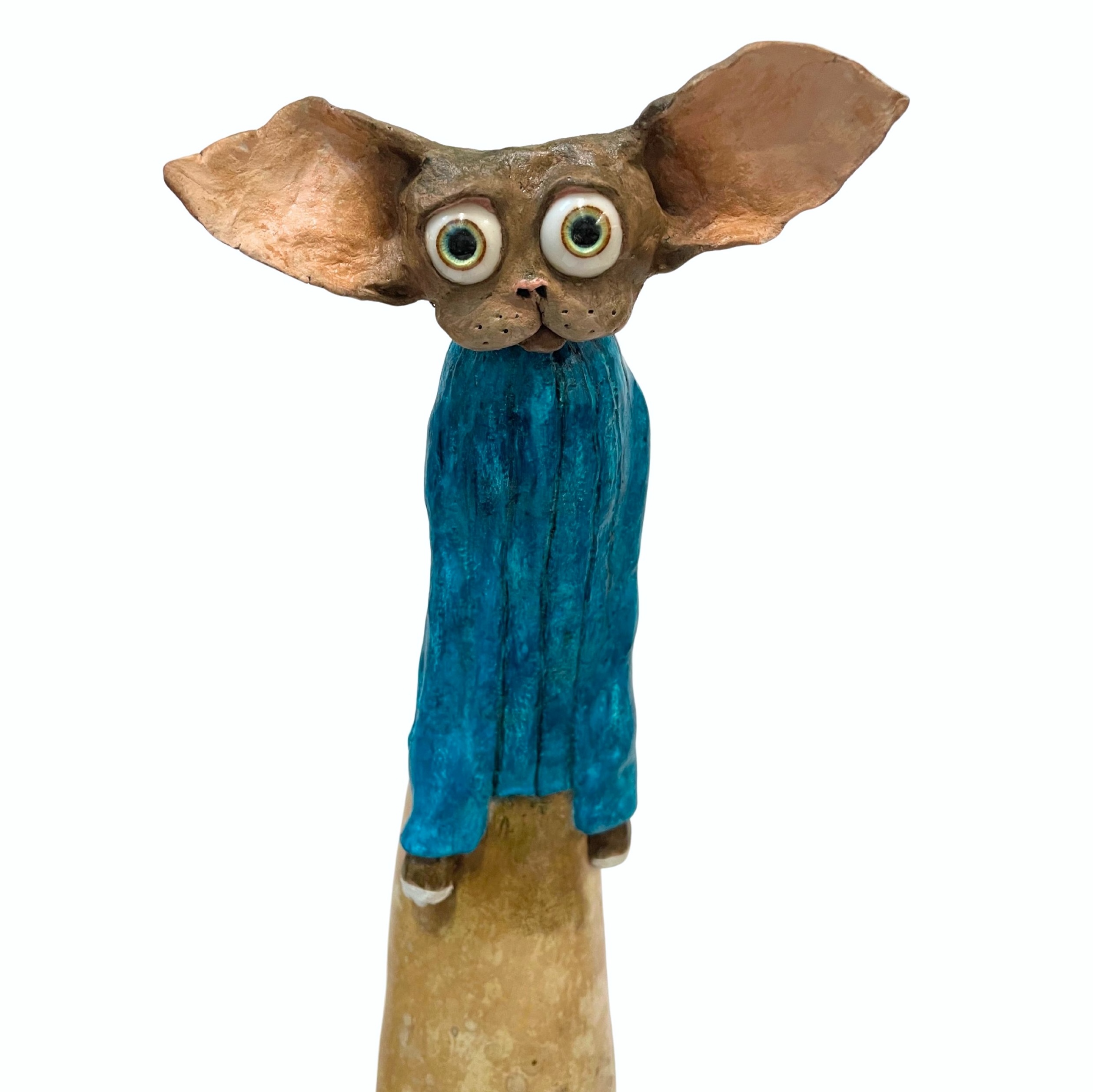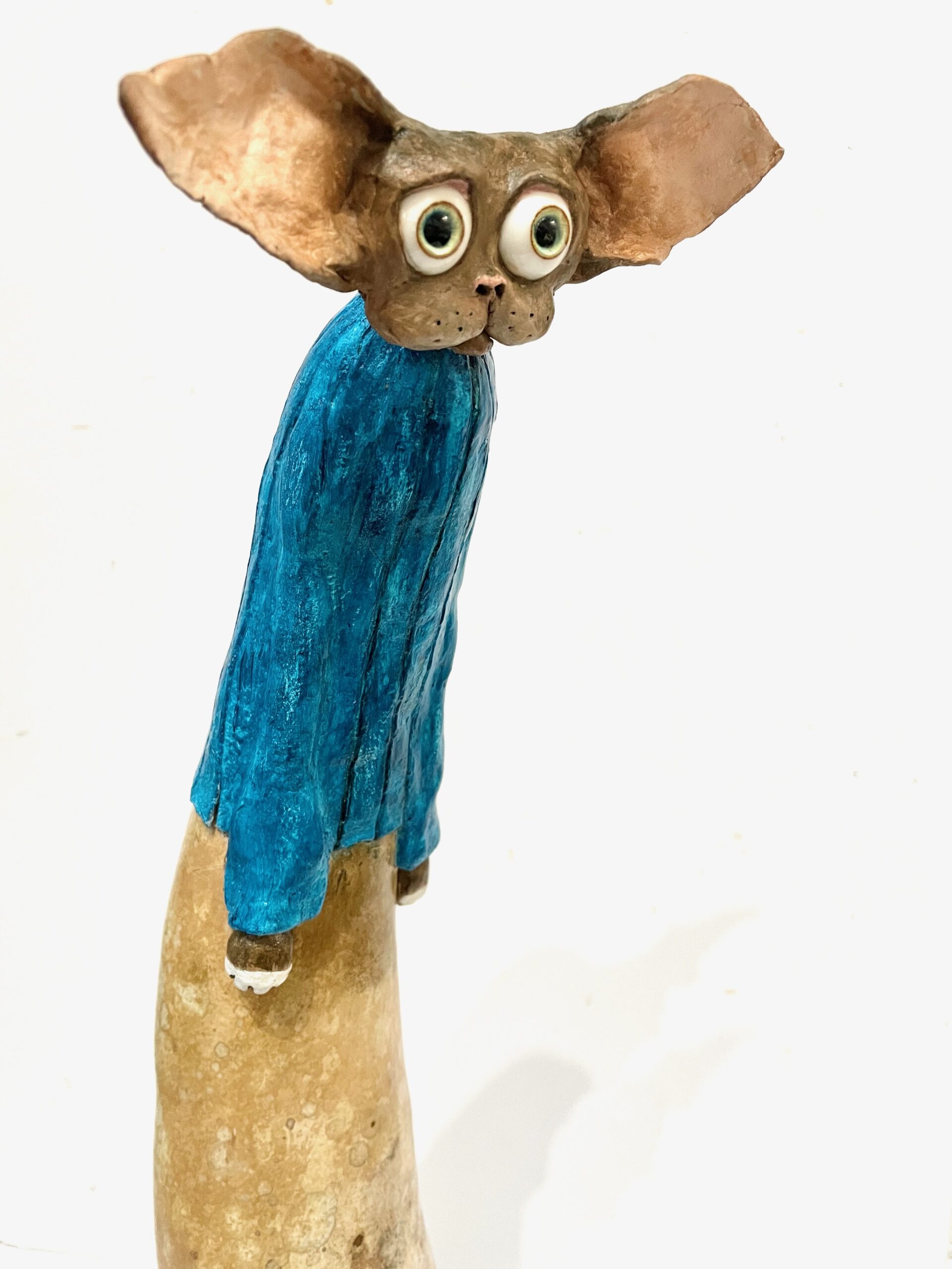 CHARLES, chat sphynx est une sculpture de chat très longue et craquante, réalisée en bois de calebasse naturel.