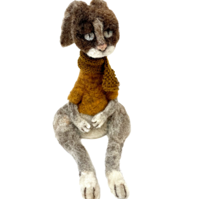 Il a été patiemment mis en forme et feutré à l’aiguille harpon sur un tapis de feutre adapté.