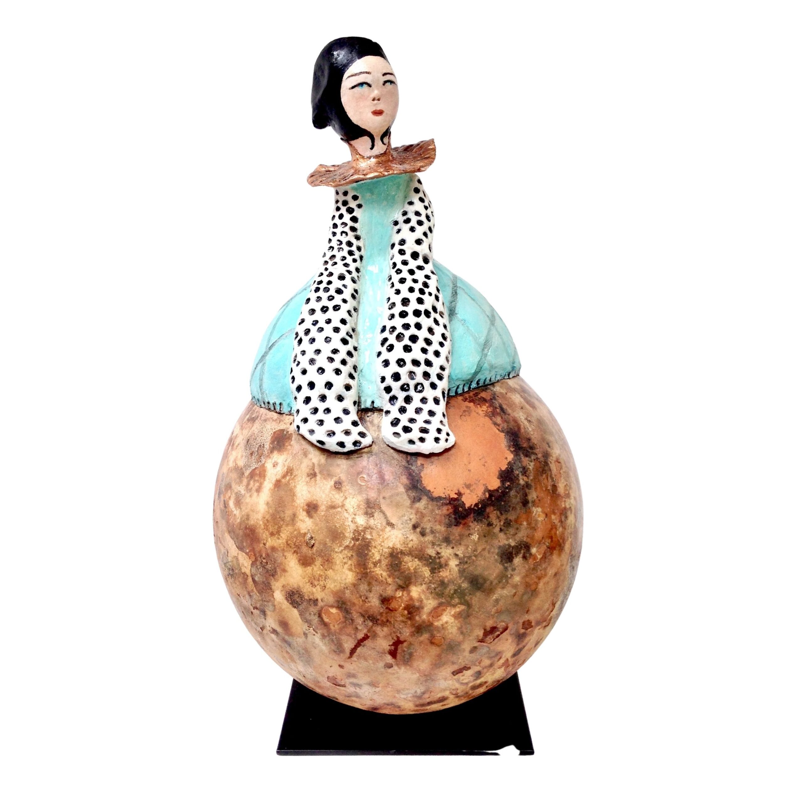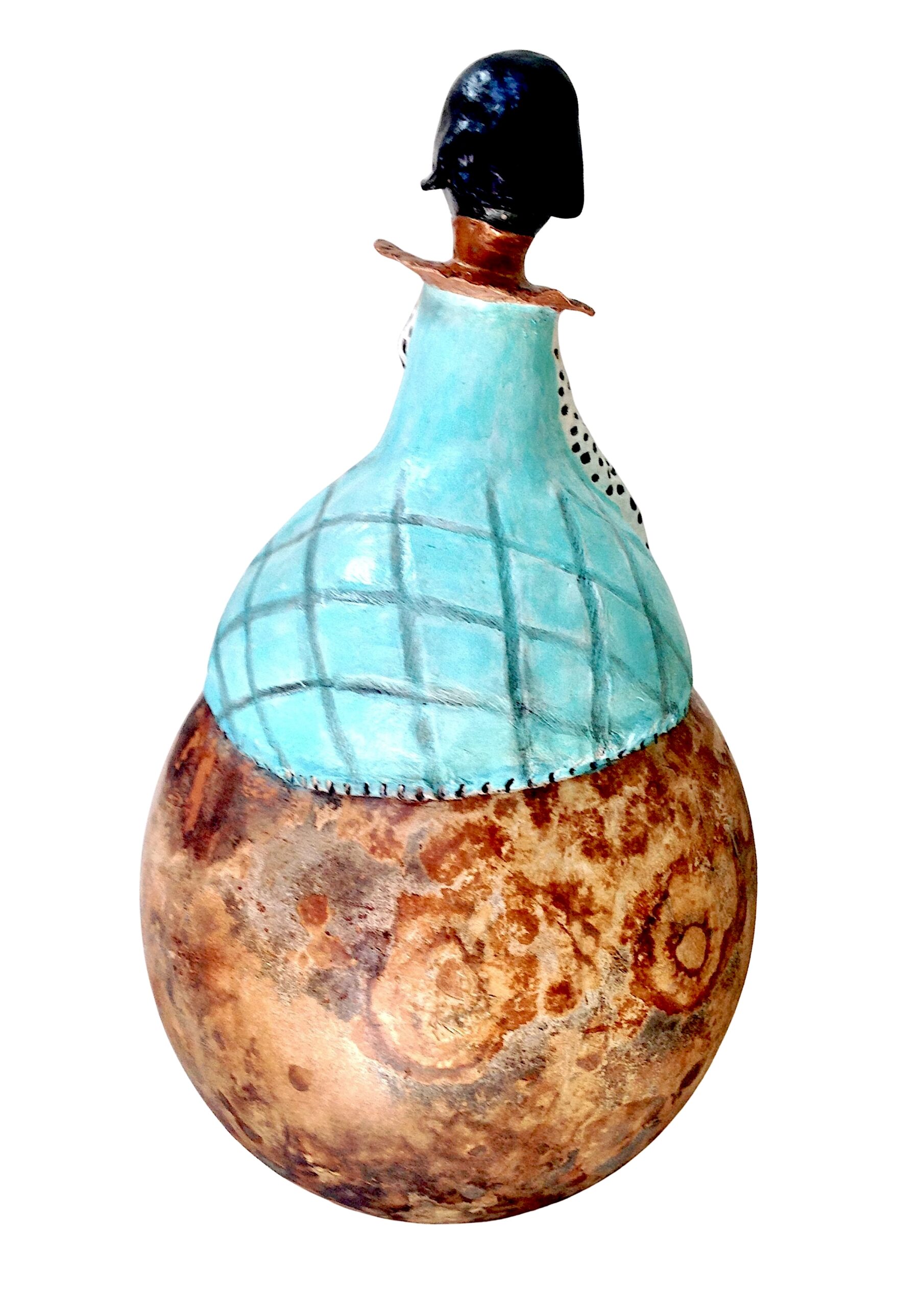 Sculpture originale et poétique d’art ethnique, DAME INÈS évoque une bouteille de dame-jeanne, tout droit sortie de la Renaissance.