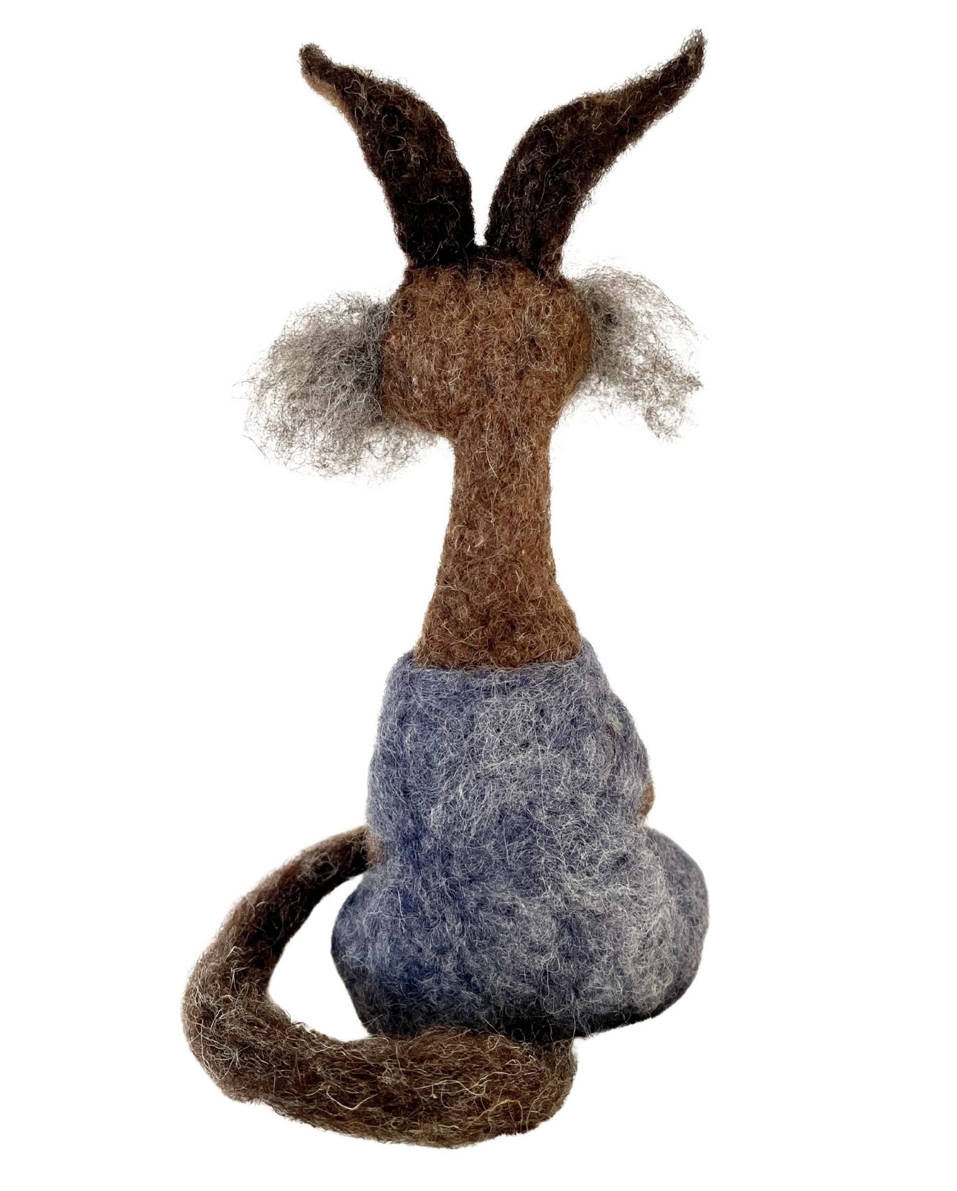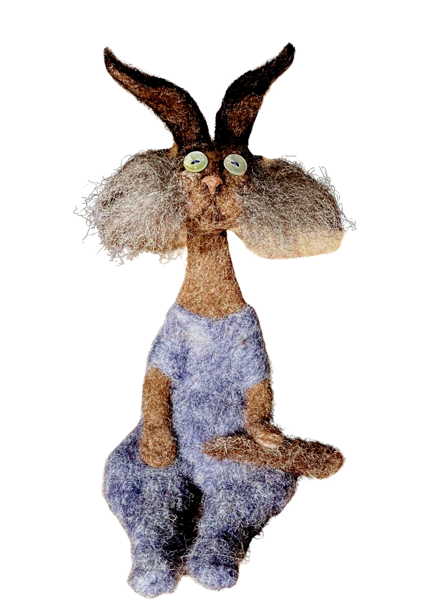 La laine cardée a été patiemment mise en forme en la feutrant à l’aiguille harpon sur un tapis de feutre.