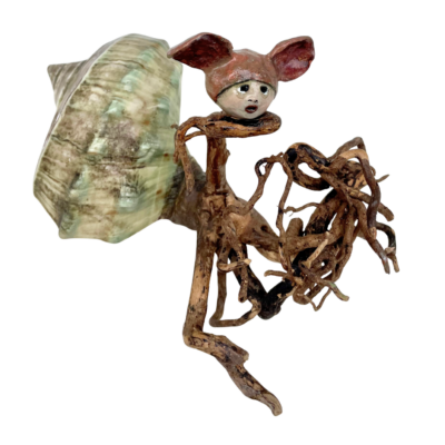 Mélusine est une sculpture insolite et décalée de la série Ostréïdes qui a été réalisée à partir du bois naturel d’une racine de plante. Mi-humaine mi-extraterrestre, on y retrouve la timidité d’un être différent qui porte un regard curieux sur le monde qui l’entoure.