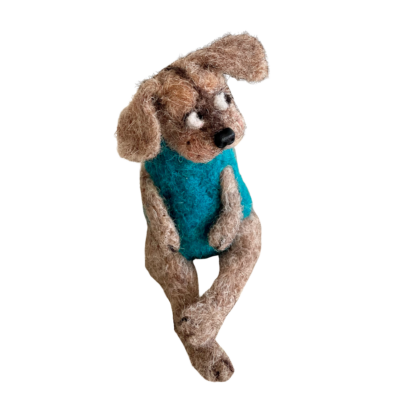 BOLCHOÏ est une musaraigne rigolote de la série des Loufoques en laine feutrée. Elle porte un justaucorps raffiné saumon pâle, et des petits chaussons rose de danse.