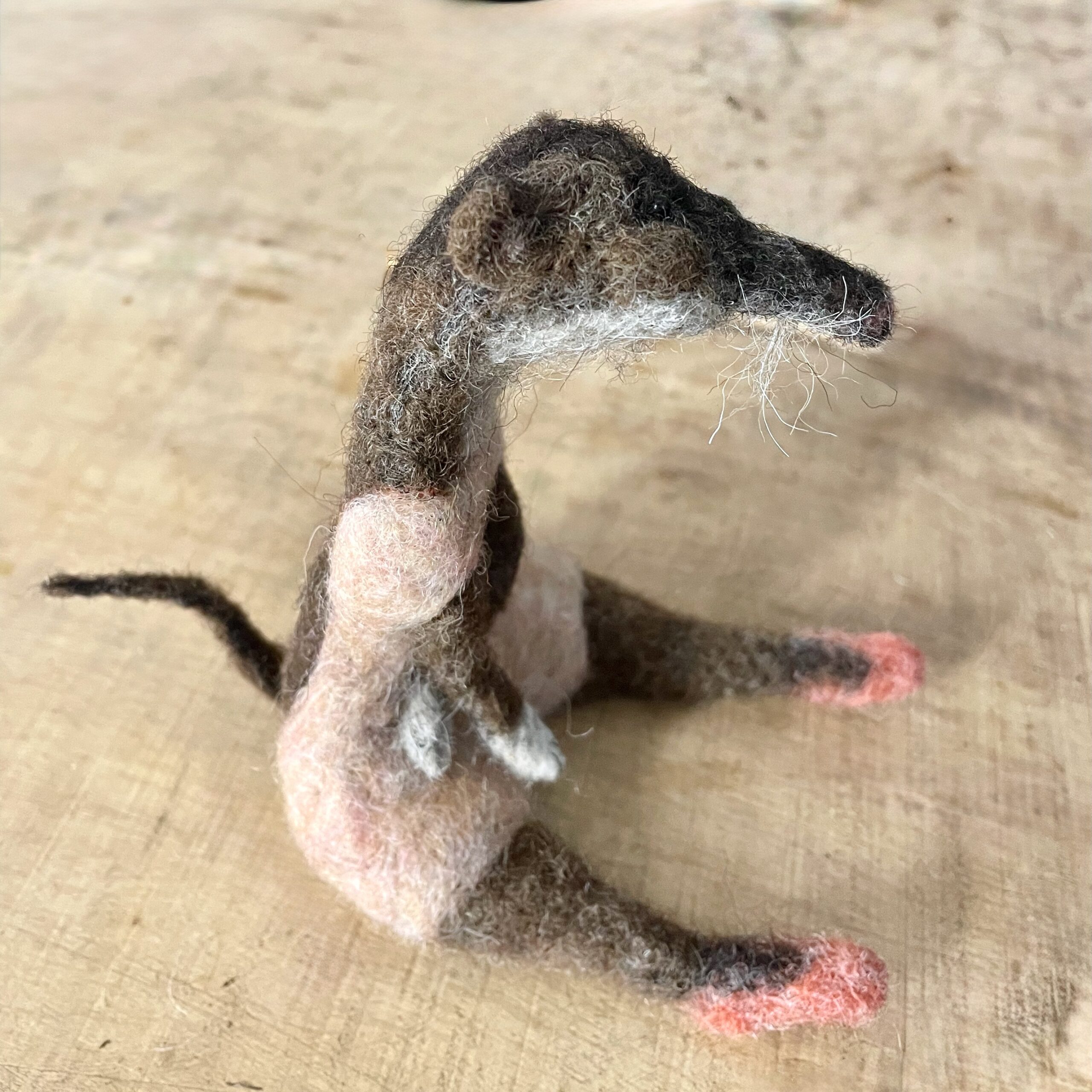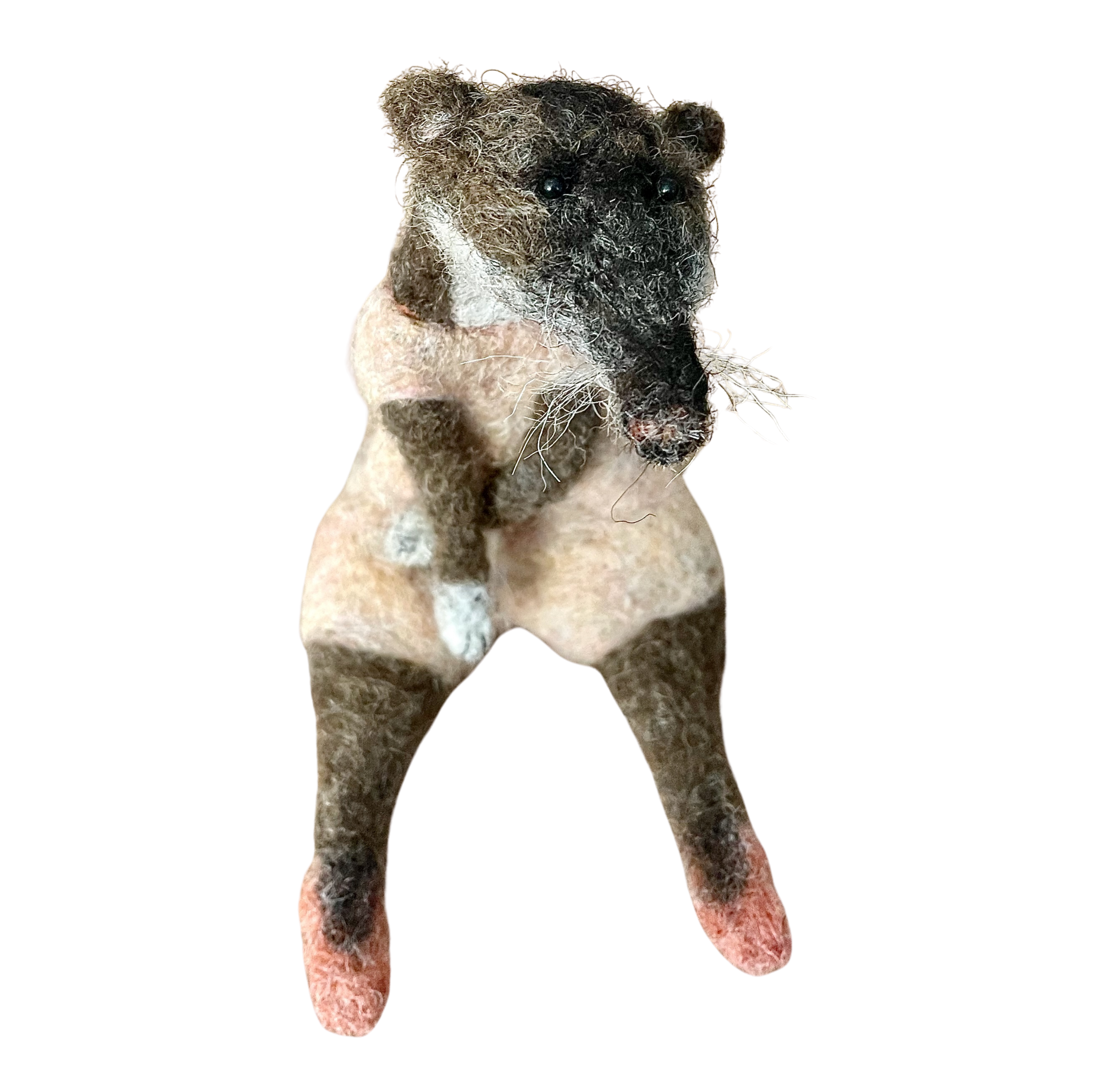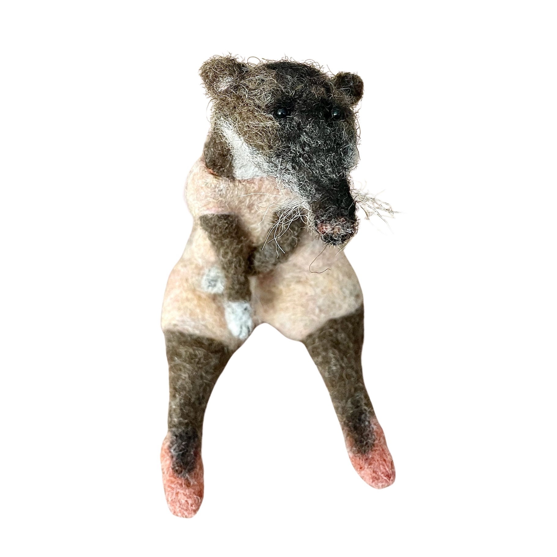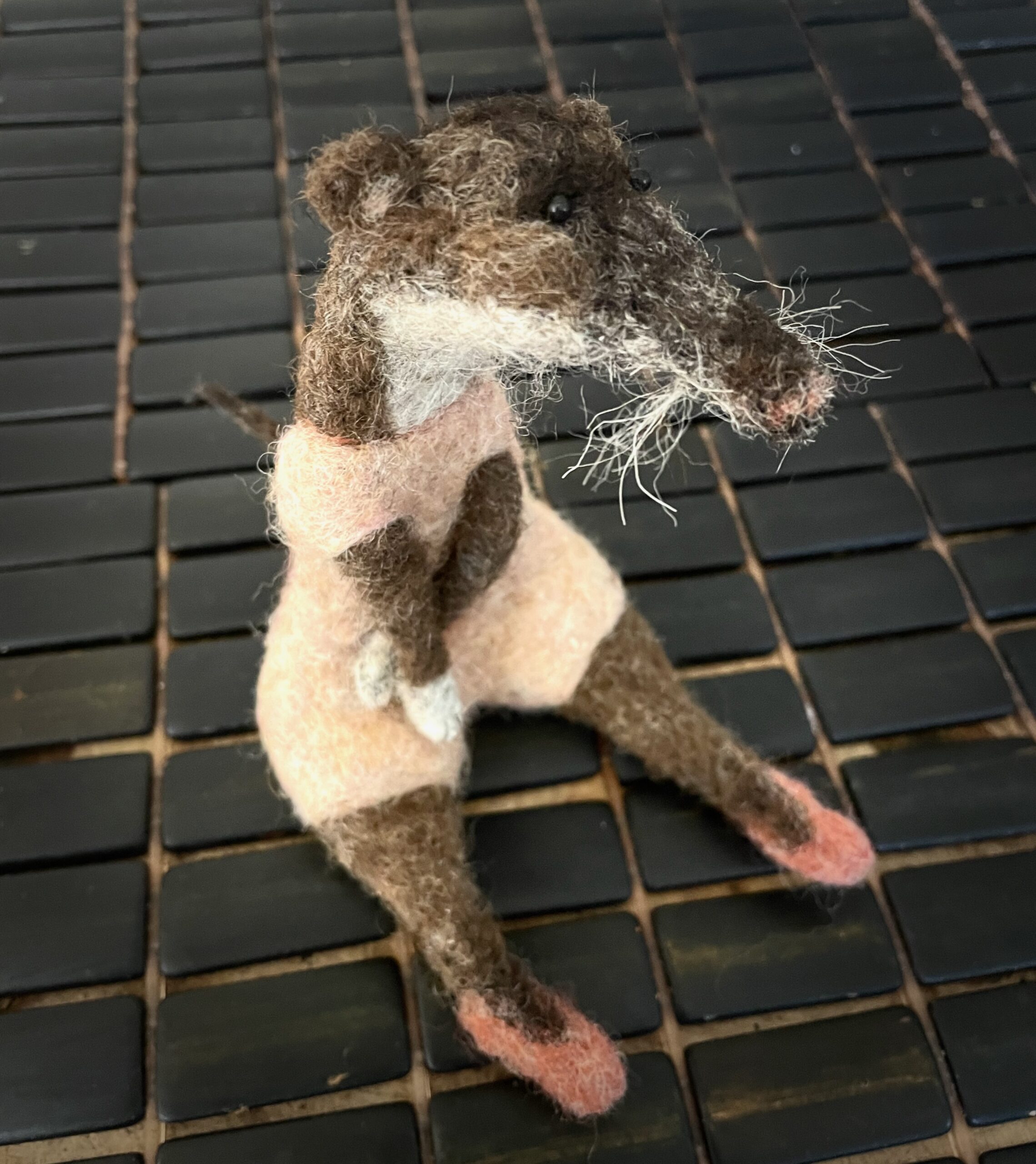 BOLCHOÏ est une musaraigne rigolote de la série des Loufoques en laine feutrée. Elle porte un justaucorps raffiné saumon pâle, et des petits chaussons rose de danse.